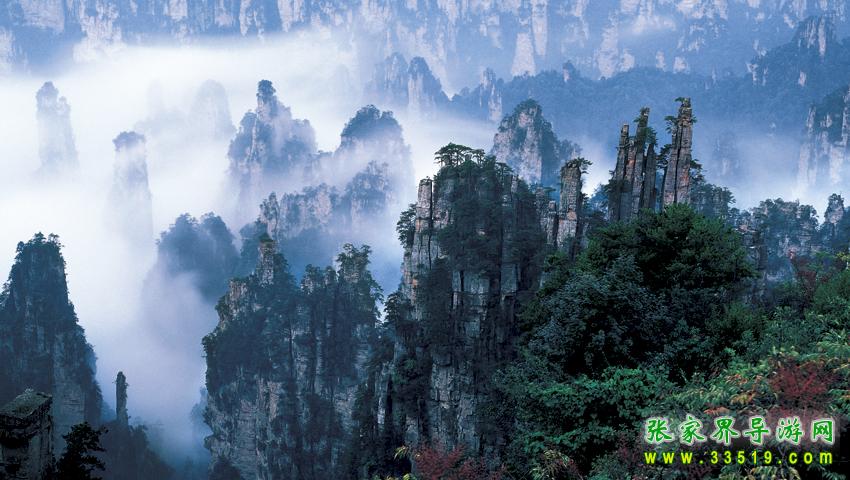 袁家界面積約1200公頃,平均海拔1074米,它東鄰金鞭溪、遠(yuǎn)眺鷂子寨;南望黃石寨,連接天波府;西通天子山;北距索溪峪。