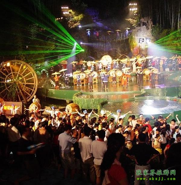 The Ancient Mystical Legend of zhangjiajie 《武陵魂•梯瑪神歌》是一場記述土家族起源、演變、戰(zhàn)爭、生產(chǎn)生活等內(nèi)容的大型立體山水實(shí)景演出,揉合了音樂、舞蹈、文學(xué)等多種藝術(shù)形式,如幻如夢的舞美燈光,搖曳生姿的原生態(tài)歌舞……濃縮了土家族數(shù)千年的發(fā)展歷史,400多名演員以自然淳樸的表演充分的展示了土家的民族文化特征,給游客帶來了耳目一新的感受。一場視聽的饕餮盛宴,一曲驚天地、泣鬼神的曠世古歌,給人山水文化光影視聽的享受?!境銎罚?a class="insidelink" target="_blank" title="張家界">張家界梯瑪神歌文化傳播有限公司】 Time come from language of China′s Tujia nationality, it means god-worshipers when offering sacrifices to their gods. The songs are a combination of various art forms, such as music, dance and literature. Sumptuous lightings, smooth dances, long-lost sacrifice ceremonies, mysteries high-pitched spell, among others create a real sensation.