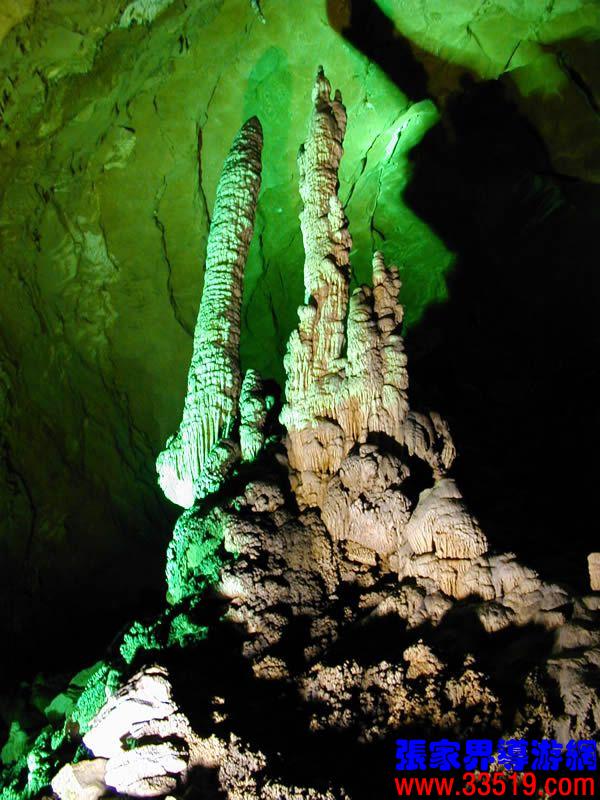 (龍宮)龍宮是黃龍洞十三個(gè)大廳中最大的一個(gè),也是景色最美的景點(diǎn)之一,底面積15000平方米,平均高40米,兩千余根石筍拔地而起,千姿百態(tài),異彩紛呈,或如飛禽走獸,或如宮廷珍藏,有的像巍巍雪松,有的像火箭升空。龍宮后園有金銀兩座花池,清水常溢,花簇盛開(kāi)。宮頂鐘乳柳垂簾掛,四周壁畫(huà)栩栩如生。溶解著各色各樣的礦物質(zhì)的水,從巖層中滲透出來(lái),滴落下來(lái)。礦物質(zhì)在洞頂凝固結(jié)晶成倒懸鐘乳石,從鐘乳石滴落的水又把礦物質(zhì)澆疊、堆壘在洞底,而長(zhǎng)成節(jié)節(jié)向上的石筍。大家看看這龍宮的造型,領(lǐng)略這磅礴的氣勢(shì)。洞內(nèi)最大石筍,高12米、直徑10米的漢白玉天然石椅“龍王寶座”居高臨下,眾多石柱石筍似人似物,維妙維肖,圍著寶座朝拜山呼,幾十座珊瑚亭亭玉立,儼然一支龐大的“宮廷樂(lè)隊(duì)”。湖南著名教授羊春秋先生作《寄生草》詞對(duì)此進(jìn)行描繪:“百態(tài)千姿模樣,三宮六院門(mén)巷。龍王開(kāi)宴設(shè)瓊漿,猴王偷果鬧天堂,君王納寵擁羅帳。搬演了人間爭(zhēng)攘,匯集了天下奇觀。”