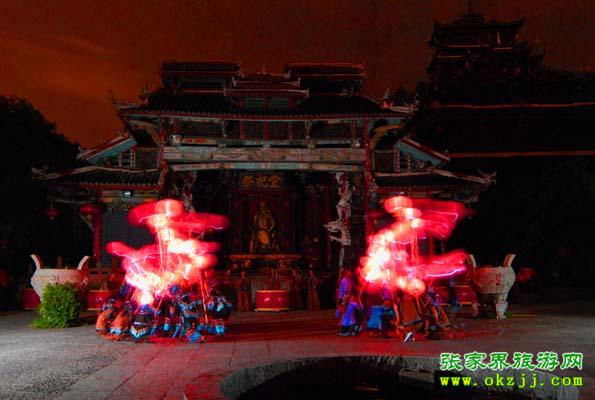 第三站:擺手場上圖騰柱的講解、土家族風情表演及客人參與的互動節(jié)目,讓您在歡快的擺手舞中陶醉。(其中每天上午十點、下午四點準時推出土家族百人大祭祖活動;