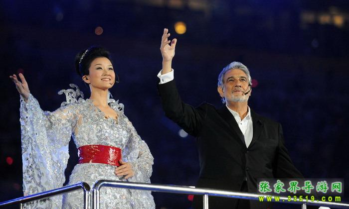 2008年8月24日晚8時,奧運會閉幕式在“鳥巢”舉行。備受期待的我國著名歌唱家宋祖英和世界三大男高音之一的著名男高音歌唱家多明戈的合唱《愛的火焰》在鳥巢響起,多明戈給予了宋祖英高度評價——“歌聲甜美,非常有藝術性。人長得非常非常漂亮,和她同臺演唱是一件非常非常高興的事情……”。在舞臺中央,宋祖英一襲銀光禮服成為了鳥巢場內的亮點,紅色的腰帶更為這套禮服平添了幾分中國韻味。多明戈白色的襯衣搭配著黑色的西裝顯得優(yōu)雅而莊重.