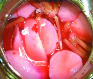 名稱: 酸魚肉 介紹: 土家飲食加工花樣頗多,吃法講究,菜肴講究酸、辣、香。夏天,天氣炎熱,不宜吃葷腥,魚、豬肉又易腐,拌上糯米粉子,腌制成酸魚肉,既不油膩,又防腐、爽口,是招待賓客的佳品。