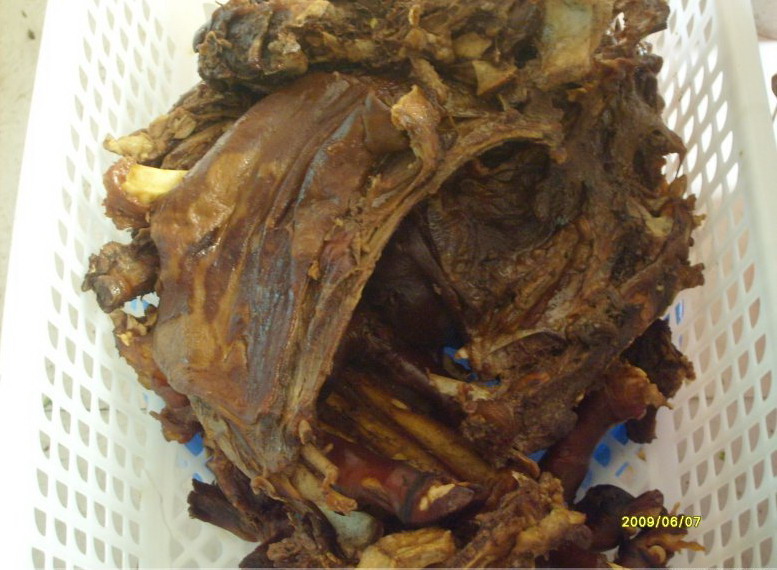 名稱: 血豆腐 介紹: 血豆腐,就是將豆腐和豬血、豬肉及花椒、辣椒等佐料拌成泥狀,捋成卵形,以竹篩置火炕上,煙熏烤成臘黃,吃起來耐嚼味香,是土家特色菜,當?shù)厝顺R云湎戮啤?在張家界的飯館里很難吃到正宗的土家特色菜,可以去做土味的特色餐館去解解饞。但是最正宗還是鄉(xiāng)下人家家里自己熏的,那才叫一個好吃?。?!