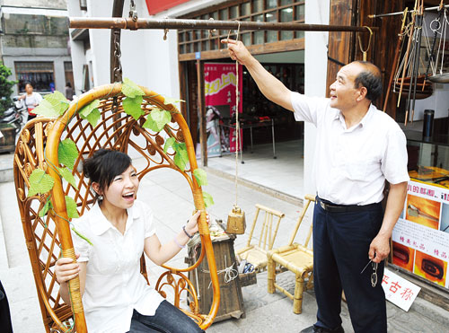 歲月悠悠,蒼桑易老,蘆江八景隨同古鎮(zhèn)的式微而漸行漸遠(yuǎn),八景的美麗也由此淡出了古鎮(zhèn)人的視線。然而記憶猶存,遺跡猶在:濤聲依舊的湘江岸邊,一棵棵依然守望著碧水藍(lán)天的古柳,便收藏著當(dāng)年“柳浪聞鶯”的遺傳秘碼和鶯啼聲聲中的浪漫故事。散落在古鎮(zhèn)的街巷庭院和廢墟中依然完好的南瓜石墩,便有往日夏天傍晚的習(xí)習(xí)涼風(fēng)從石中逸出,輕聲訴說著“石礅夏涼”的美妙光景。湘江邊那座曾經(jīng)映照過船帆點(diǎn)點(diǎn)和一江逝水的樓閣,雖然雕梁畫棟已成虛而遺跡難覓,卻被作為“望江樓”商標(biāo)復(fù)活在了名聞遐邇的靖港布鞋上,讓后人依然能一睹“樓鏡瀟湘”的精致。那兩棵“七星傲月”檀和“八卦傳神”樹的奇枝妙冠雖然因蒼老而羽化登仙,盤虬蒼然的樹根卻依然鼾眠在古鎮(zhèn)天主教堂的斷垣殘椽和插花寺土堆下夢著曾經(jīng)的枝繁葉茂和傳奇體驗(yàn)。“扇子迎客”的扇子碼頭,“獨(dú)腳鶴立”的獨(dú)腳吊樓,“梨園戲水”的臨河戲臺(tái),從它們留守在故址中的石墩、石柱、石板和巧奪天工的石雕,依然能喚起古鎮(zhèn)人從記憶深處復(fù)原出它們當(dāng)年在熱鬧繁華中的妖嬈和神圣。