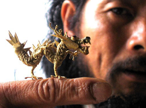 長沙地區(qū)的傳統(tǒng)工藝品,系用棕櫚葉編成的各種動(dòng)物,種類很多,如鳥、蟲、魚、蝦、鶴、蛇等,形象逼真,栩栩如生。曾參加德國萊比錫世界博覽會(huì),人們贊嘆它“不可思議”,法國藝術(shù)館特意收購珍藏。棕櫚為常綠喬木,望城縣湘江兩岸都有種植,藝人們采集棕葉,編織成各種小動(dòng)物,成為“江南一絕”。