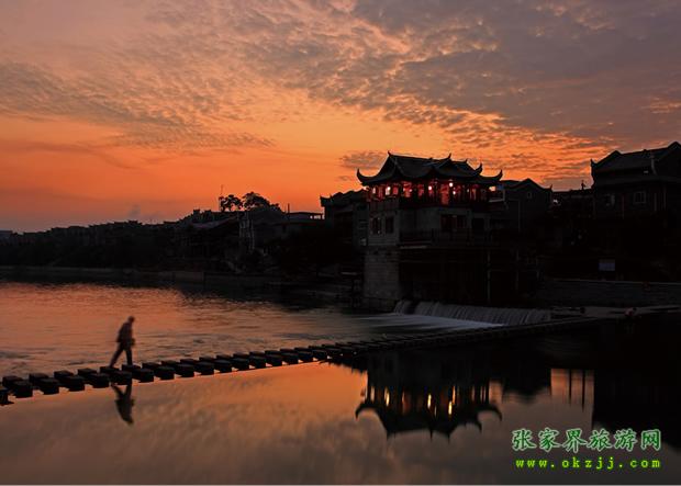 乾州古城城池小巧玲瓏,石城墻垣逶迤回環(huán)1980m,高5m,方溶江穿城而過,沿江古街上被歷代行人的腳磨得光亮的青石板,既自然又精巧地鑲嵌著,沿街建有苗族特有的民宅——吊腳樓,具有濃郁的民族風格。