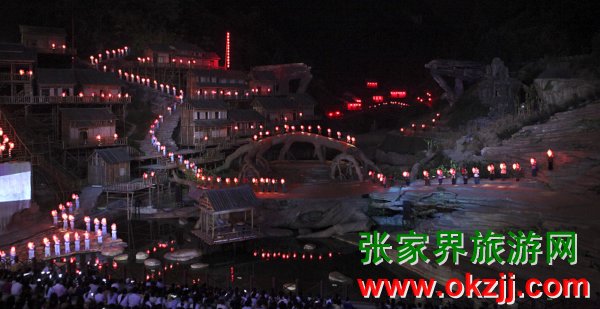 在天門山景區(qū)全球最大的玻璃鋼舞臺(tái)上,在開(kāi)幕式上試演的世界第一臺(tái)大型山水實(shí)景音樂(lè)劇《天門狐仙》,拉開(kāi)了’2009中國(guó)湖南國(guó)際旅游節(jié)張家界民族文化周的序幕。