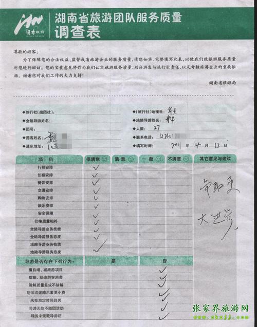 2011年4月13日魏先生一行27人旅游質(zhì)量反饋:爭取更大進步