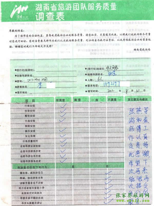- 游客夏先生為表?yè)P(yáng)導(dǎo)游李姣姣寫(xiě)來(lái)表?yè)P(yáng)信致我張家界... [14811]