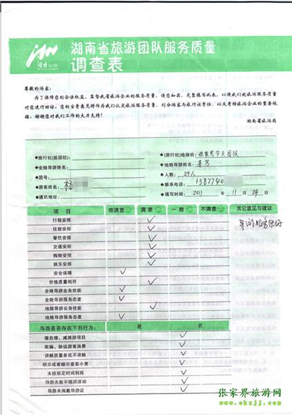2011年11月24日楊先生一行24人旅游質(zhì)量反饋:導(dǎo)游服務(wù)很好