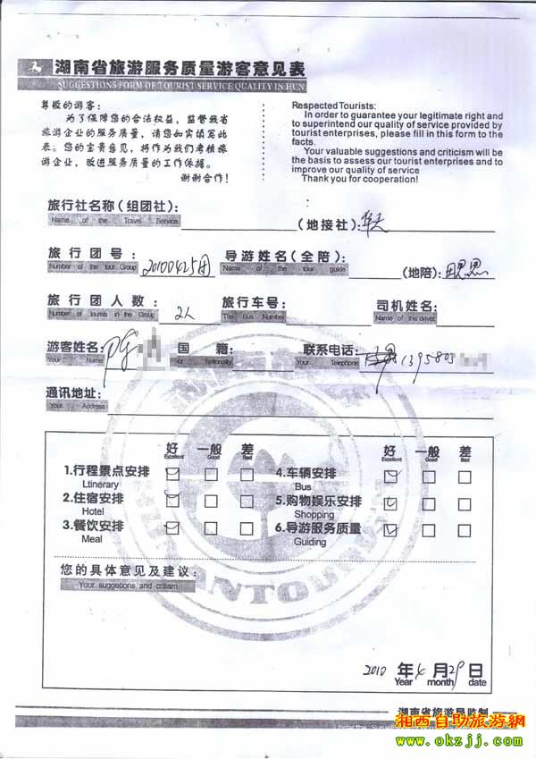 - 2011年10月26日張小姐一行18人旅游質(zhì)量反饋 [10482]
