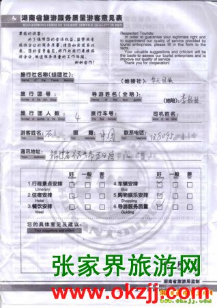 2010年5月2日福建石先生一行4位旅游質(zhì)量反饋