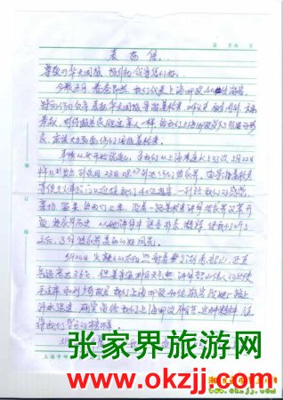 - 游客夏先生為表揚(yáng)導(dǎo)游李姣姣寫來表揚(yáng)信致我張家界... [14811]