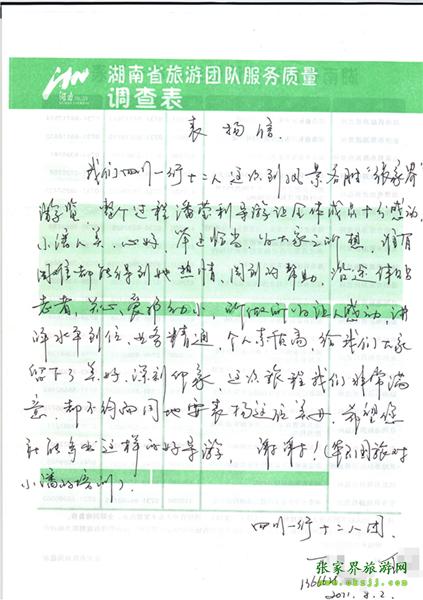 - 游客夏先生為表?yè)P(yáng)導(dǎo)游李姣姣寫來(lái)表?yè)P(yáng)信致我張家界... [14811]
