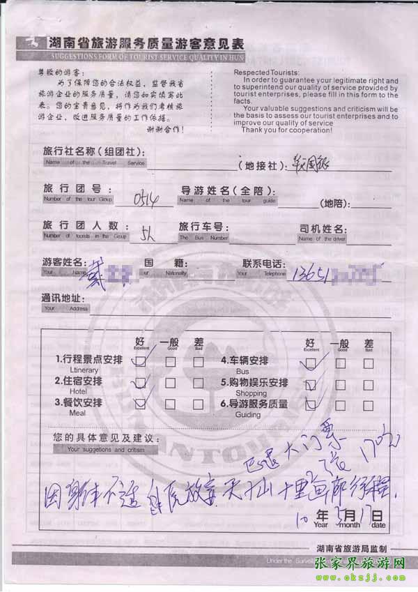 - 2011年10月5日黃先生一行17人旅游質(zhì)量反饋 [7847]