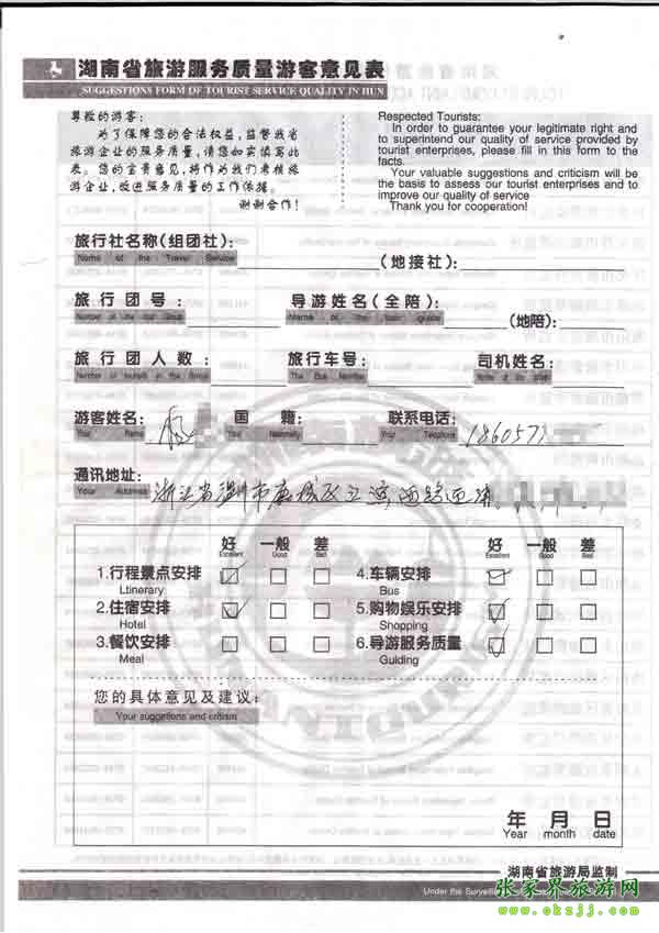 2010年9月24日楊先生旅游質(zhì)量反饋
