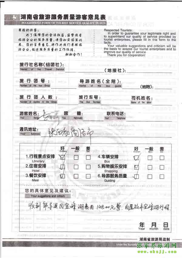 - 游客夏先生為表?yè)P(yáng)導(dǎo)游李姣姣寫(xiě)來(lái)表?yè)P(yáng)信致我張家界... [14811]