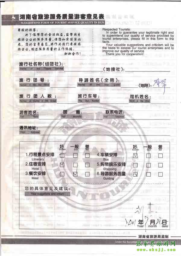 - 2011年10月26日張小姐一行18人旅游質(zhì)量反饋 [10482]