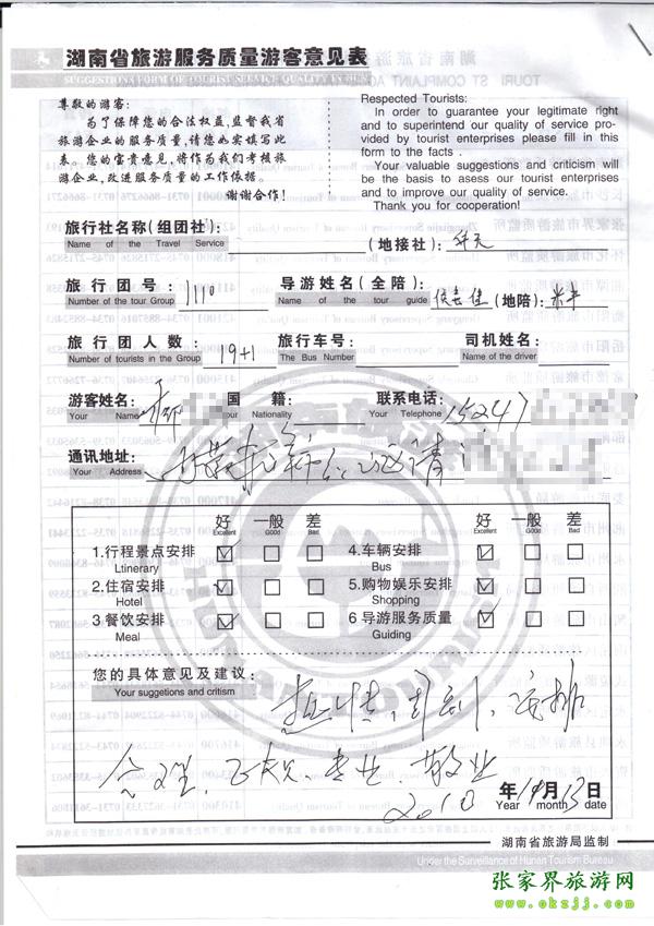 - 游客夏先生為表揚導(dǎo)游李姣姣寫來表揚信致我張家界... [14811]
