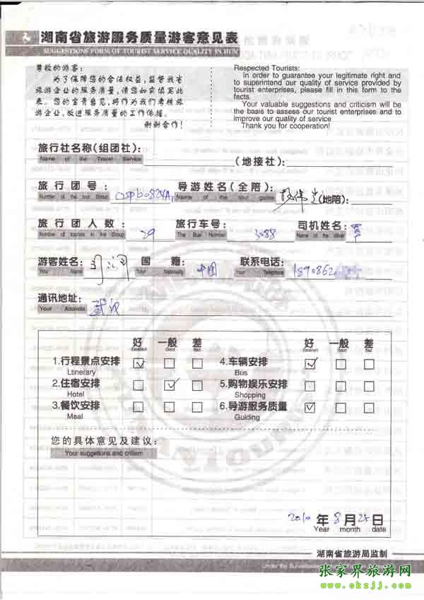 2010年8月25日周先生旅游質(zhì)量反饋