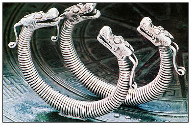 銀飾以其多樣的品種、奇美的造型和精巧的工藝,不僅向人們呈現(xiàn)了一個瑰麗多彩的藝術世界,而且也展示出一個有著豐富內(nèi)涵的精神世界。銀飾的種類較多,從頭到腳,無處不飾。除頭飾、胸頸飾、手飾、衣飾、背飾、腰墜飾外,個別地方還有腳飾。