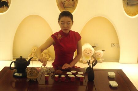 4月27日,世博會云南館一位茶藝師在表演普洱茶茶藝。上海世博園部分省區(qū)市館舉行茶藝表演,展現(xiàn)產(chǎn)茶大國中國的茶文化。